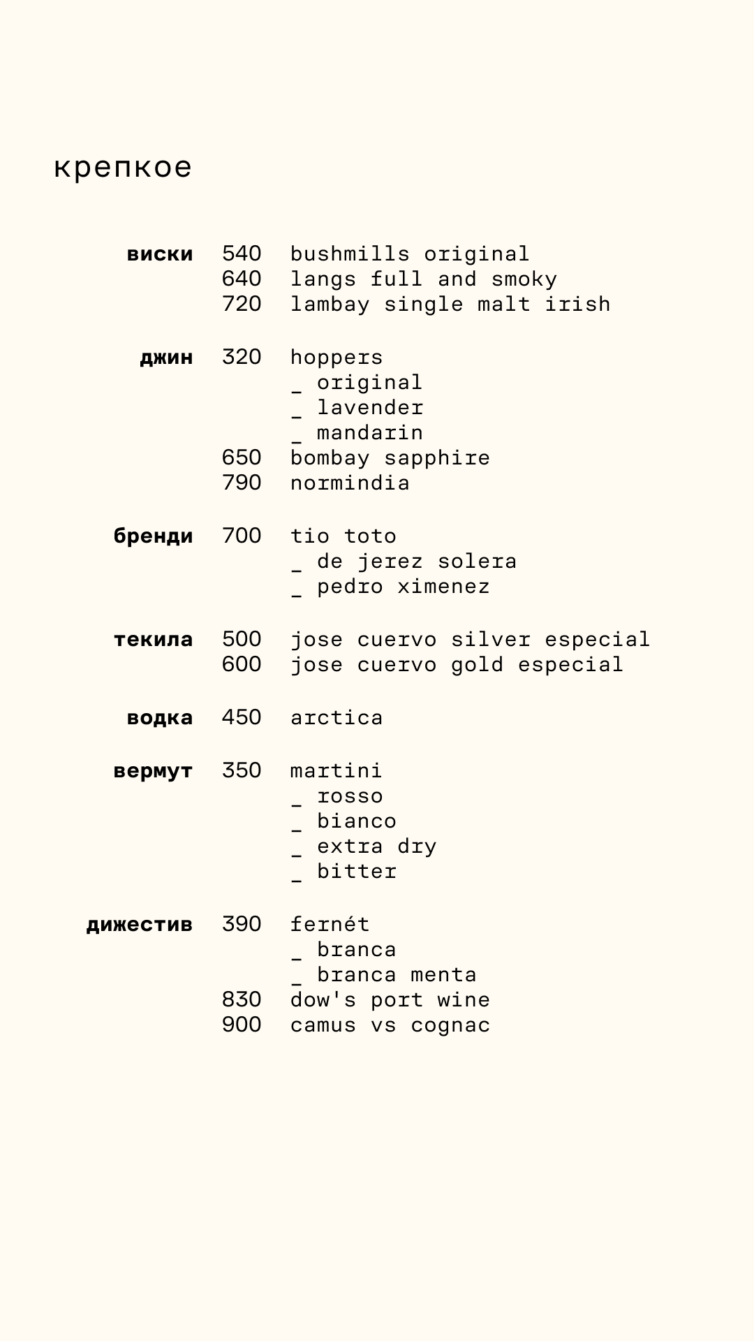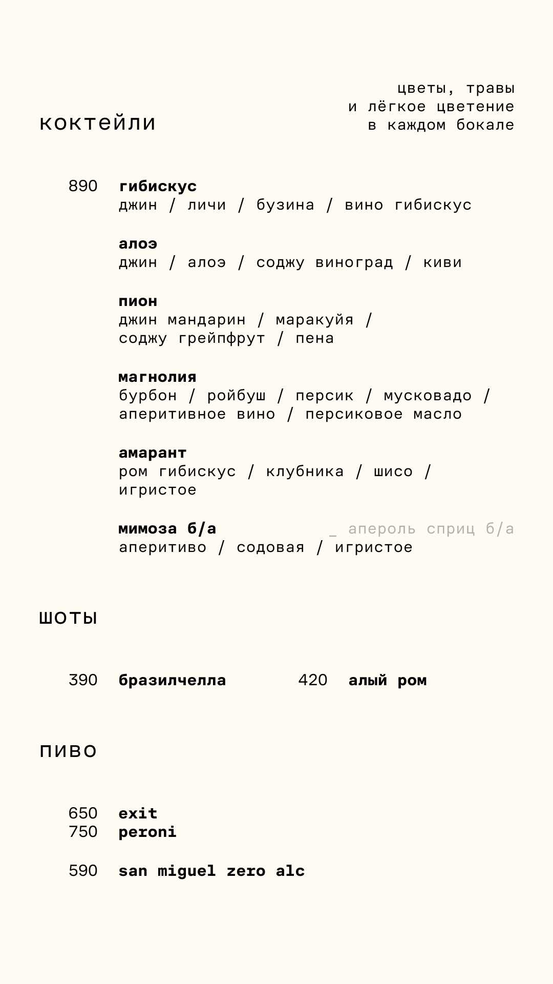— классические и авторские коктейли — кофе и б/а